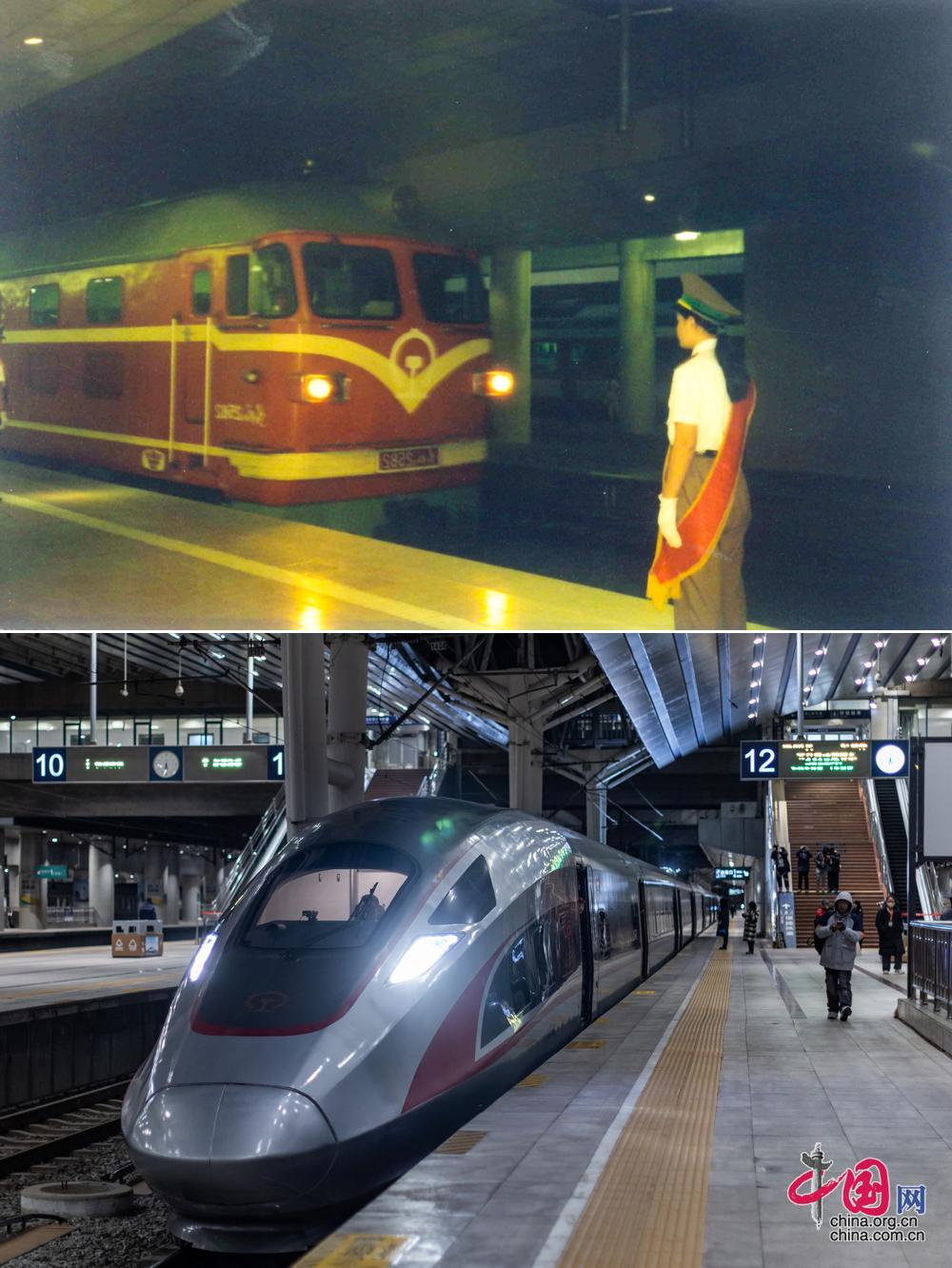 三十年间,北京西站见证了中国铁路由“四纵四横”迈向“八纵八横”;从开站时的京广、京九“两线一站”,到现在的京广高铁、京雄城际等“十一线八站”;开行列车从运营初期的27对到2025年的193对;旅客年发送量由1996年的826万人次到2025年的6539万人次,每一组数据的蜕变,都是北京西站跟随中国铁路从追赶到领跑的时代缩影。(上图为历史照片,下图为中国网记者 郑亮2026年拍摄)