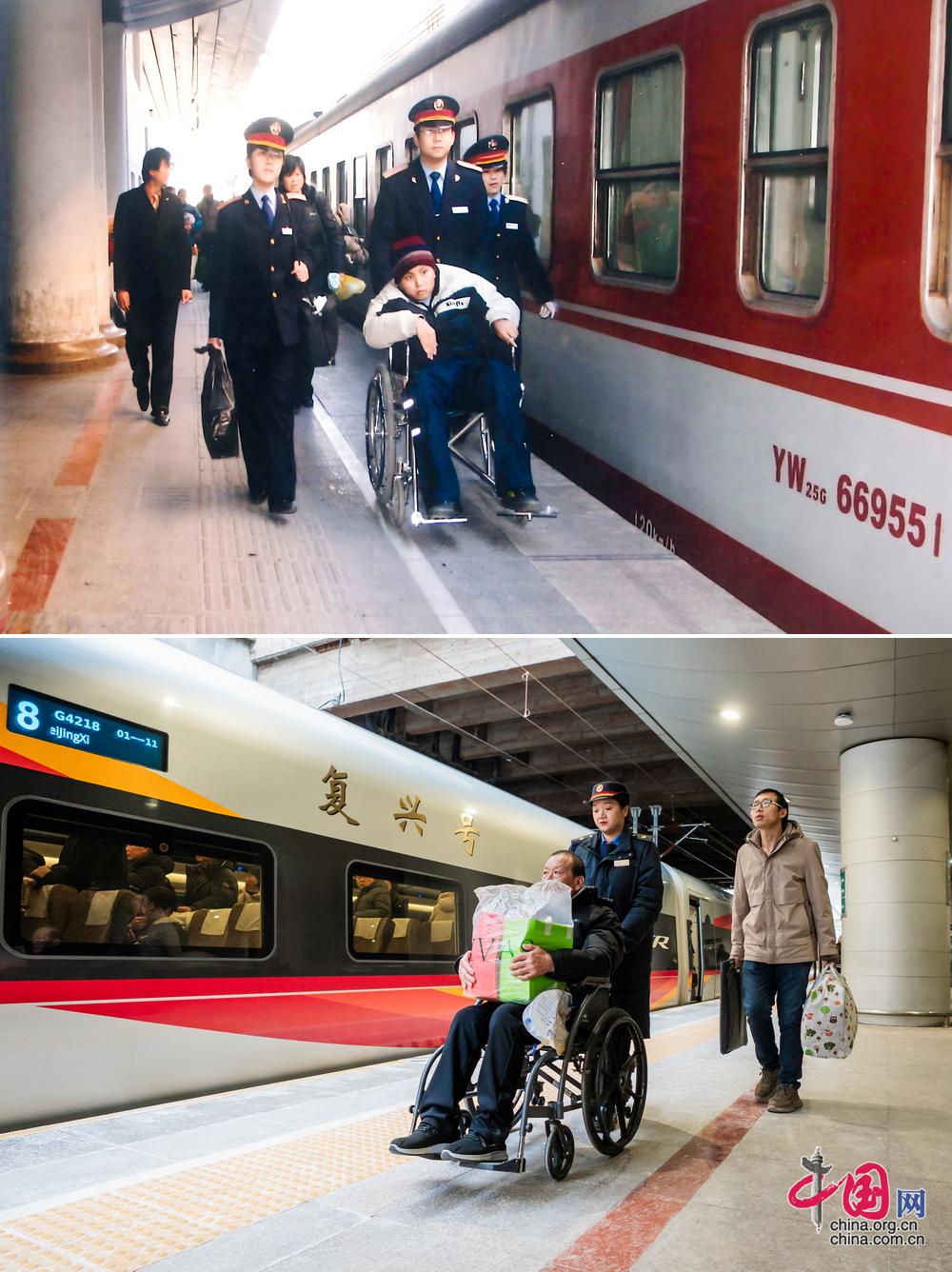 三十年间,北京西站的硬件设施不断变化,但诚心待客、热心服务、真心助人、实心爱岗的“036”四心精神始终未变。(上图为历史照片,下图为中国网记者 郑亮2026年拍摄)
