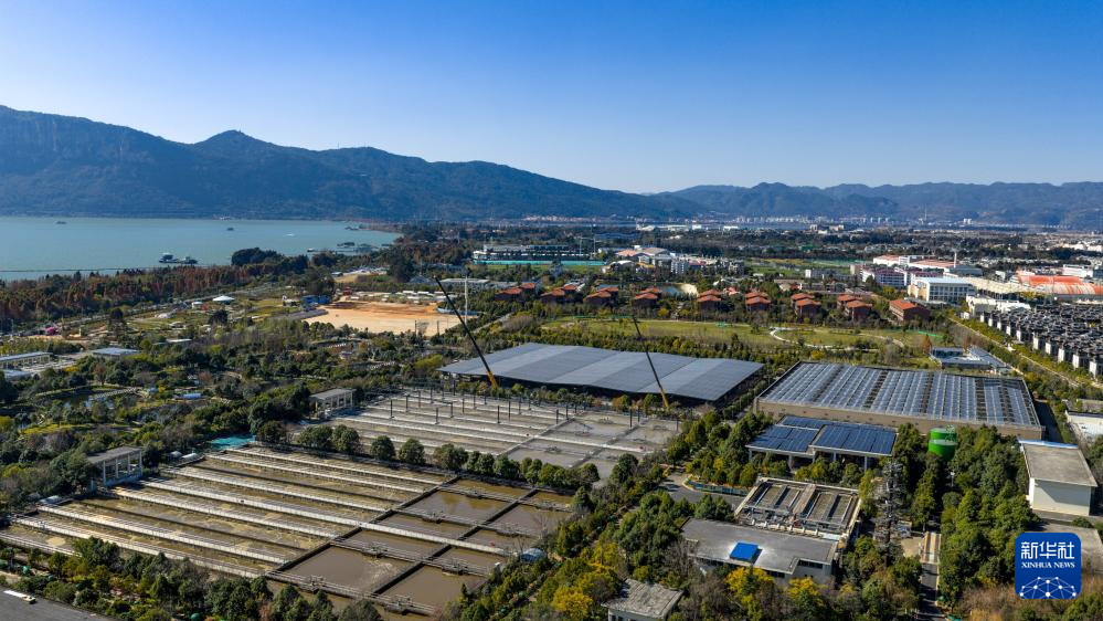 这是位于滇池边的昆明市第七、八水质净化厂(1月22日摄,无人机照片)。该水质净化厂设备更新改造项目已于2025年底竣工,污水处理效率得到有效提升。