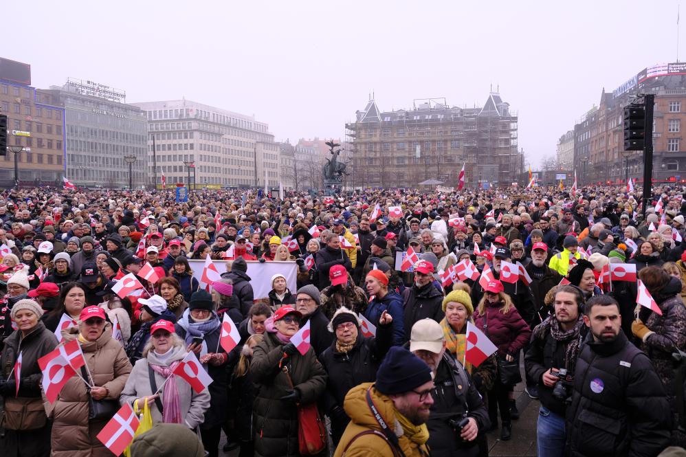 1月17日,人们在丹麦首都哥本哈根的市政厅广场参加游行示威。新华社记者张玉亮摄