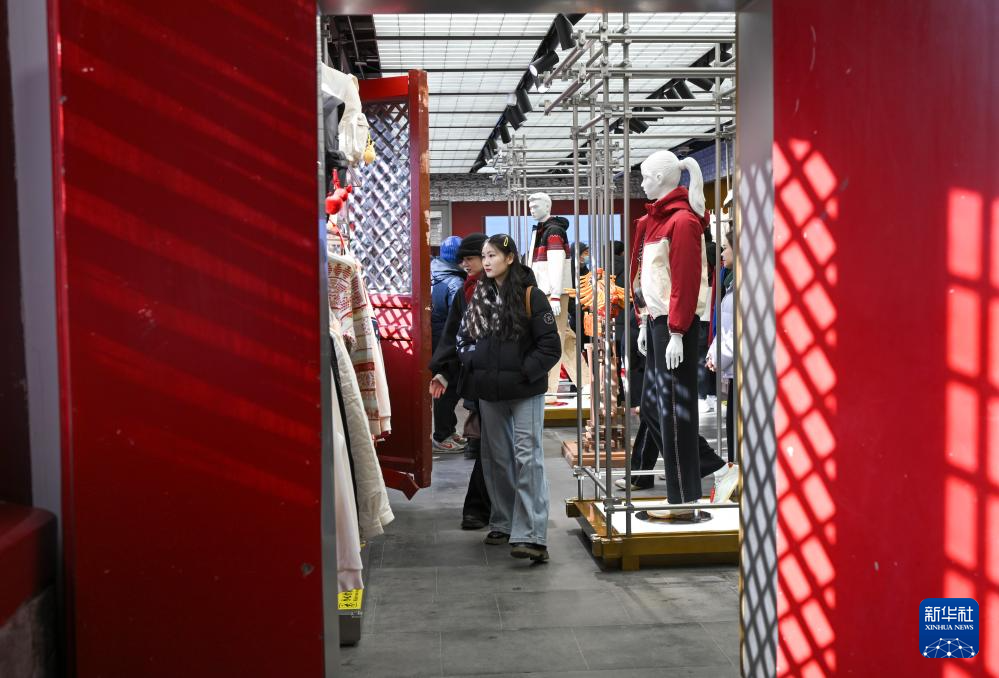 1月24日,游客在故宫文创空间内选购商品。