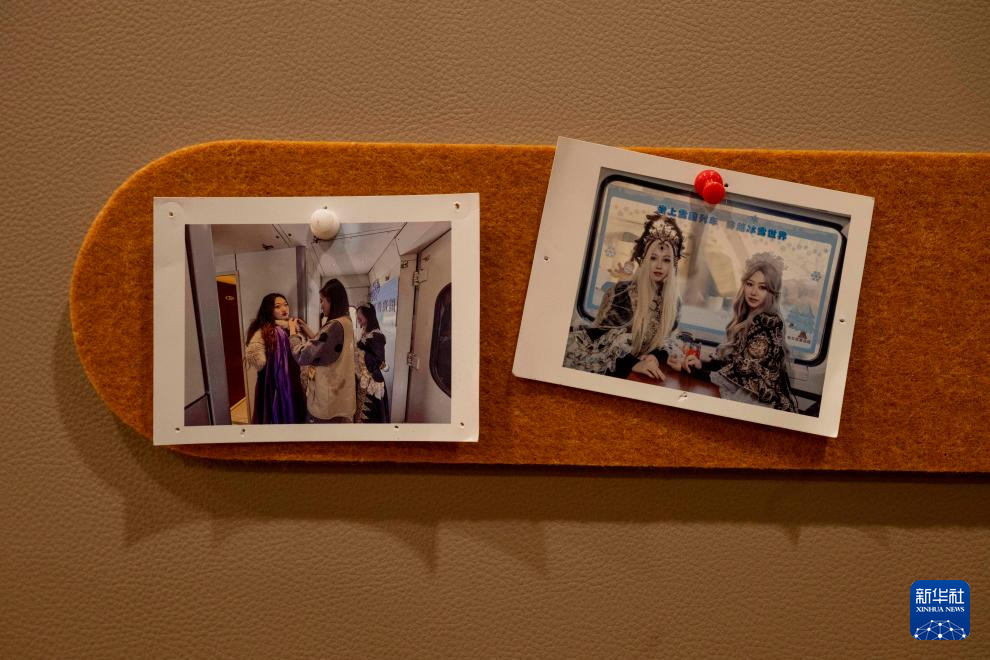 Y783次“悠享龙江·银旅号”列车上展示的2025年的旅拍照片(1月25日摄)。