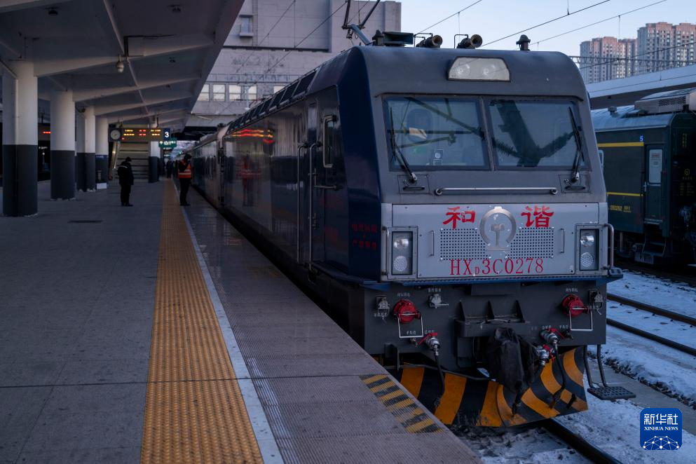 1月25日拍摄的停靠在哈尔滨东站的Y783次“悠享龙江·银旅号”列车。