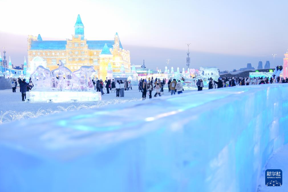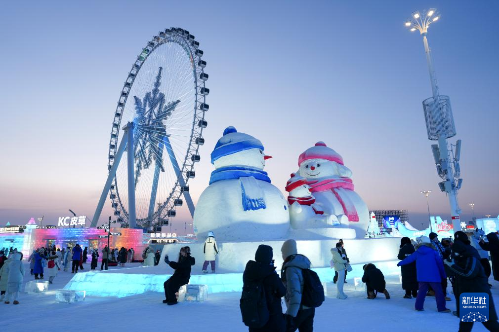 寒冬时节,哈尔滨冰雪大世界园区流光溢彩,吸引了来自天南海北的游客观赏游玩,畅享冰情雪趣。