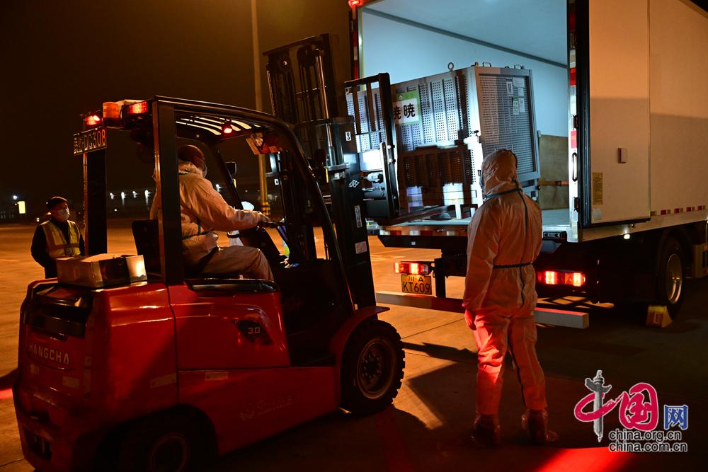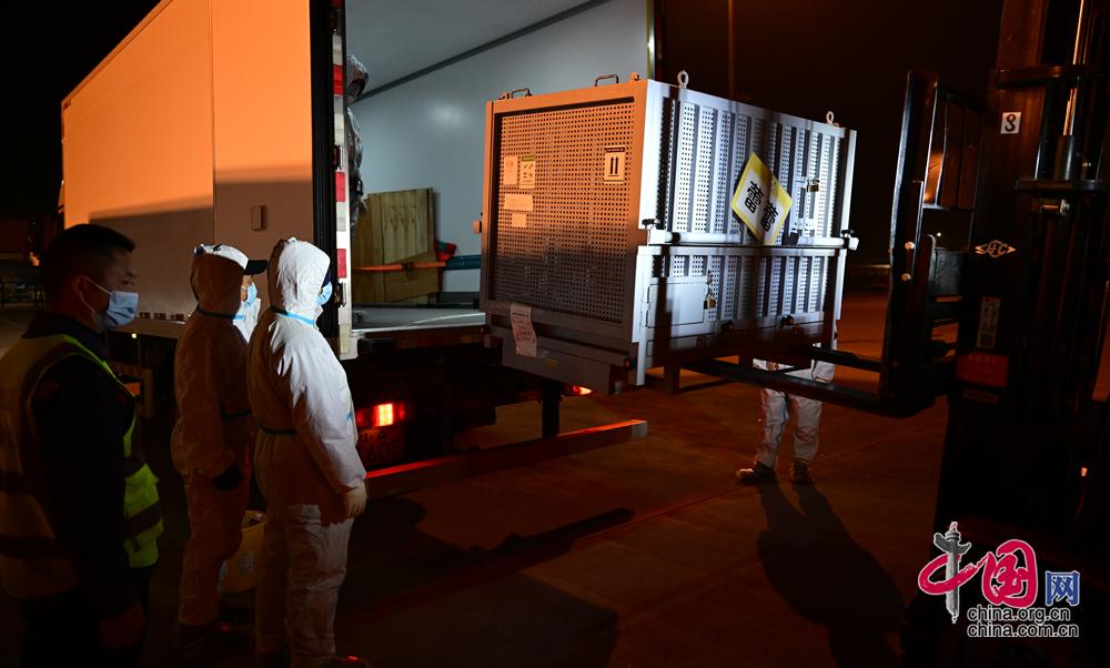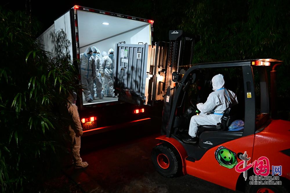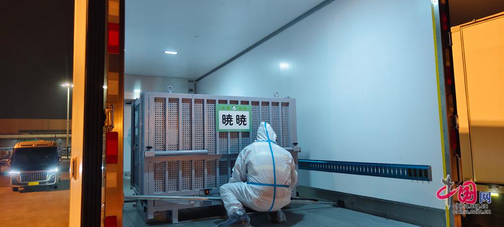旅日大熊猫“晓晓”“蕾蕾”装运上车。李传有摄影