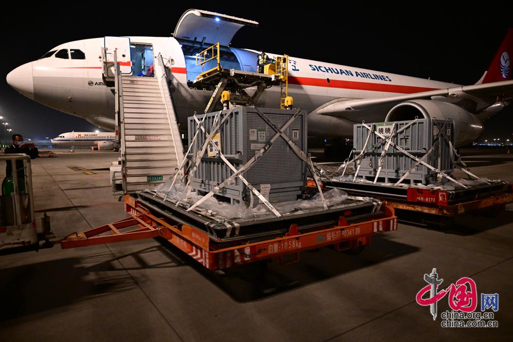 旅日大熊猫“晓晓”“蕾蕾”抵达成都。李传有摄影