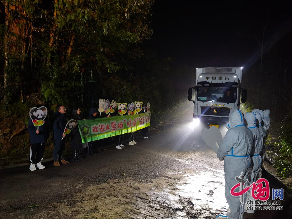 旅日大熊猫“晓晓”“蕾蕾”抵达熊猫中心雅安基地。李传有摄影