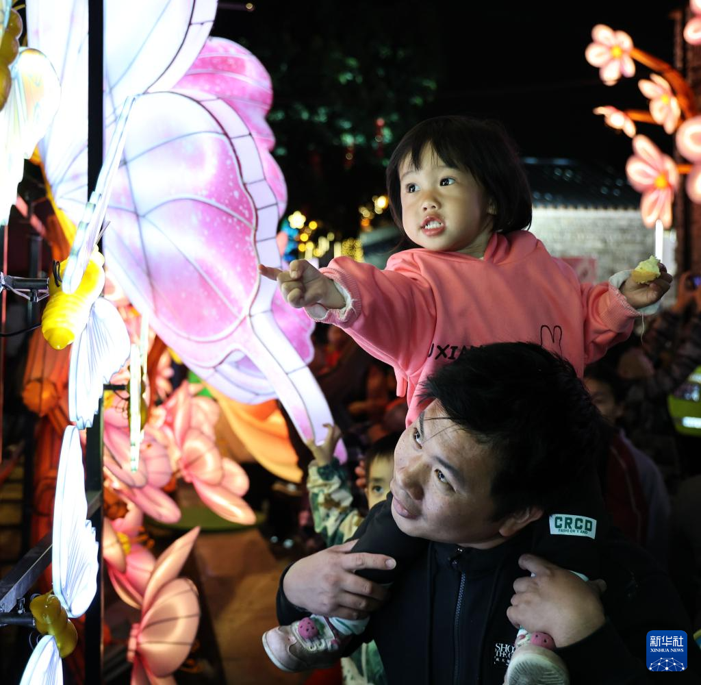 小朋友在观赏花灯(1月30日摄)。