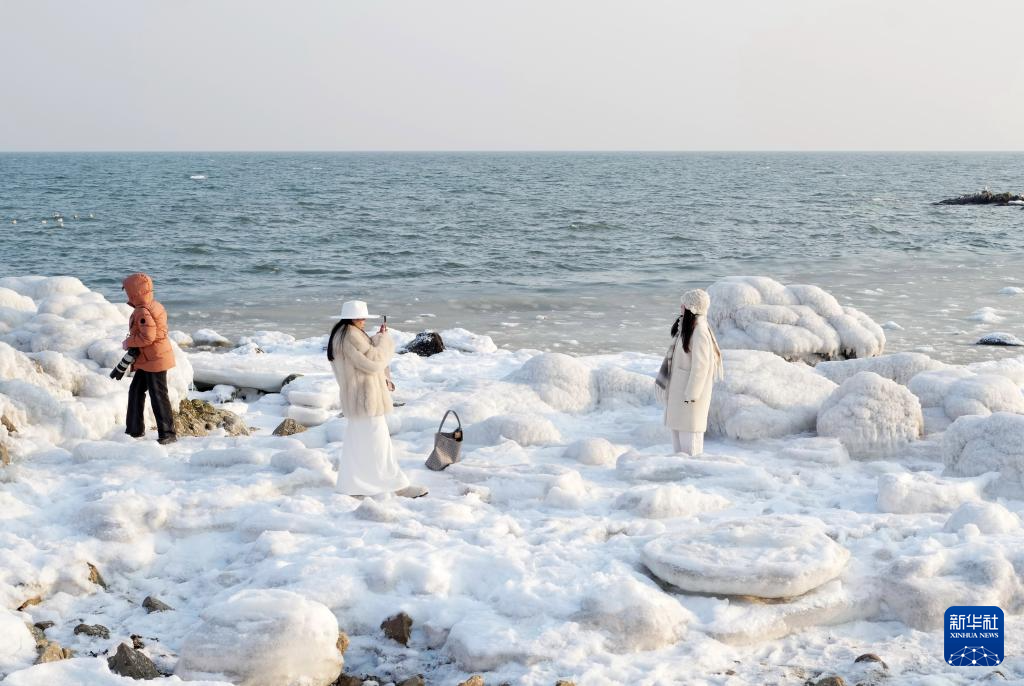 冬日里,河北省秦皇岛市海岸线出现结冰现象,吸引诸多游客前来观赏。