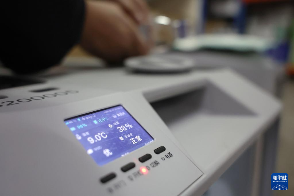 2月1日,高铁宠物运输专用箱的液晶屏上显示着实时温度、湿度和氧浓度等信息。