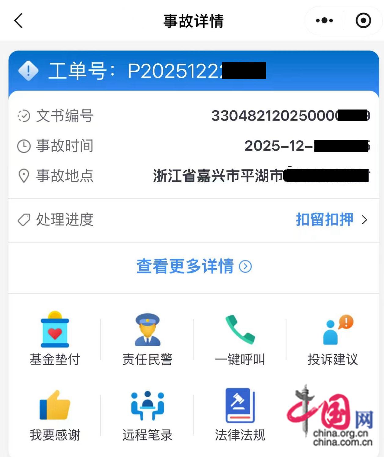 中国网讯 “这款小程序用起来真方便!再也不用在交警队、医院、保险公司来回跑,在线就能签收文书,处理进度也能随时掌握。”近日,浙江省平湖市新仓镇新庆路庆丰村路段发生一起伤人交通事故,行人沈某被汽车撞伤。事发后,双方当事人均通过“嘉警云处助手”平台线上处理,1.8万元交强险救助垫付款当天就交付到了伤者手中。