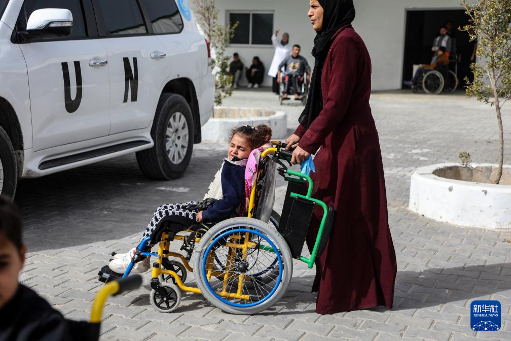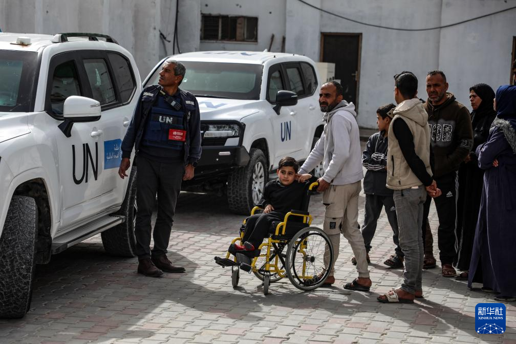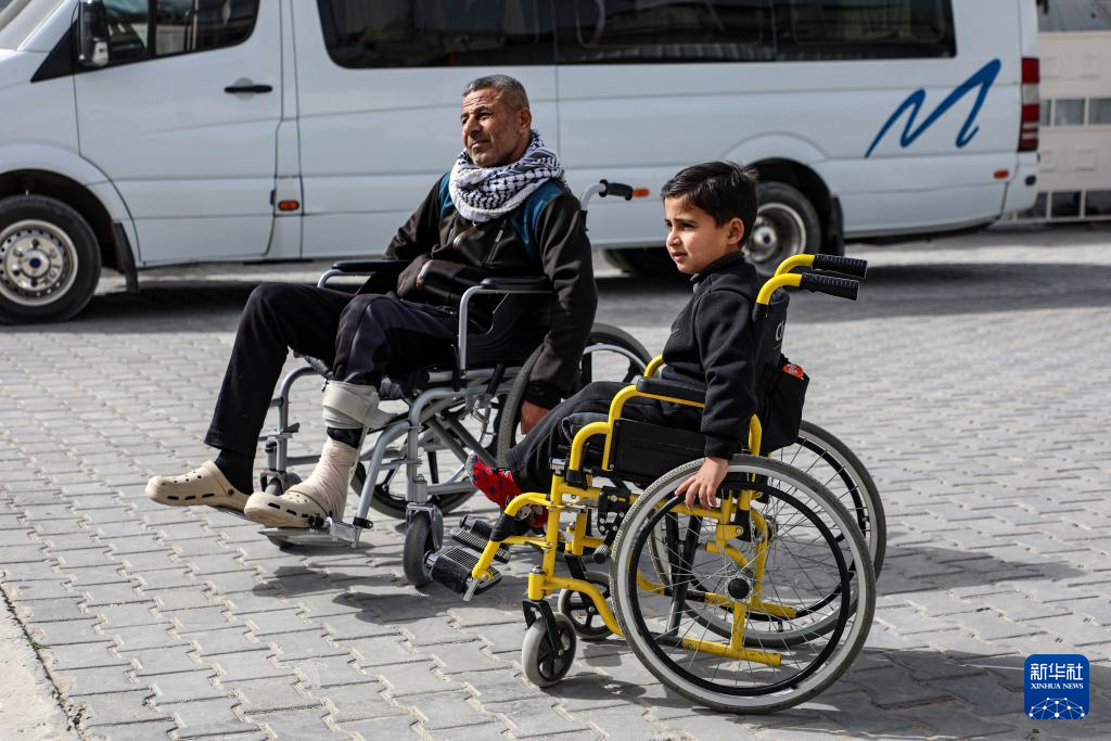 2月2日,在加沙地带南部汗尤尼斯,巴勒斯坦人等待通过拉法口岸到加沙地带以外地区就医。