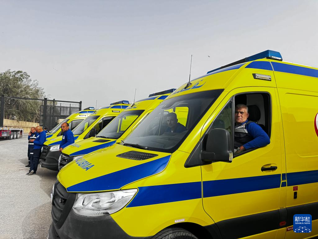 2月2日,救护车停在拉法口岸埃及一侧。