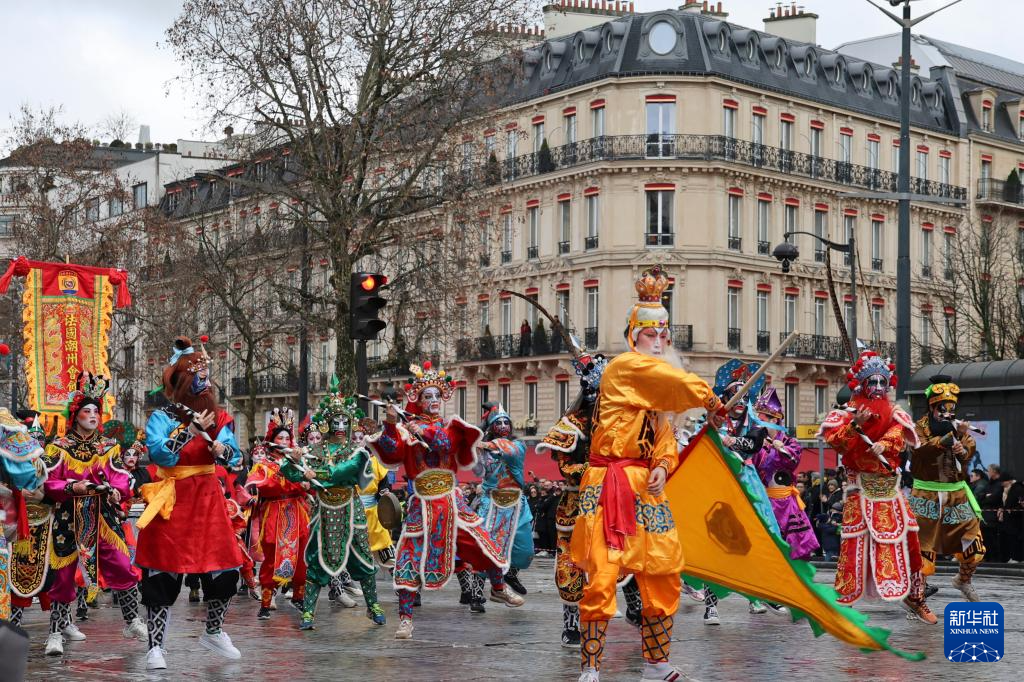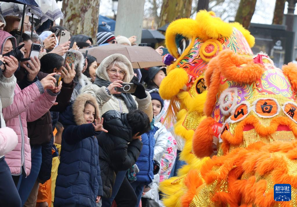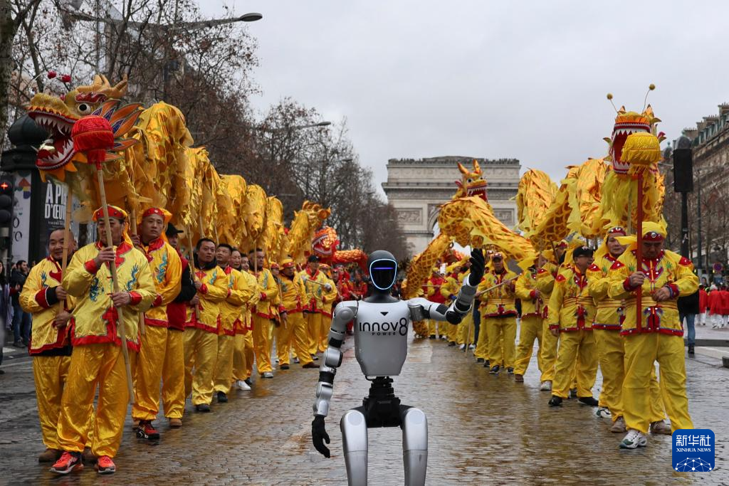 “欢乐春节满巴黎·龙狮贺岁舞香街”春节巡游活动2月1日在巴黎香榭丽舍大街举行,庆祝即将到来的农历春节。这是该活动第四次亮相香榭丽舍大街,由机器人引领的春节巡游表演方阵和紧随其后的舞龙舞狮、民族舞等传统表演,吸引了大街两侧的巴黎市民和游客驻足观看。