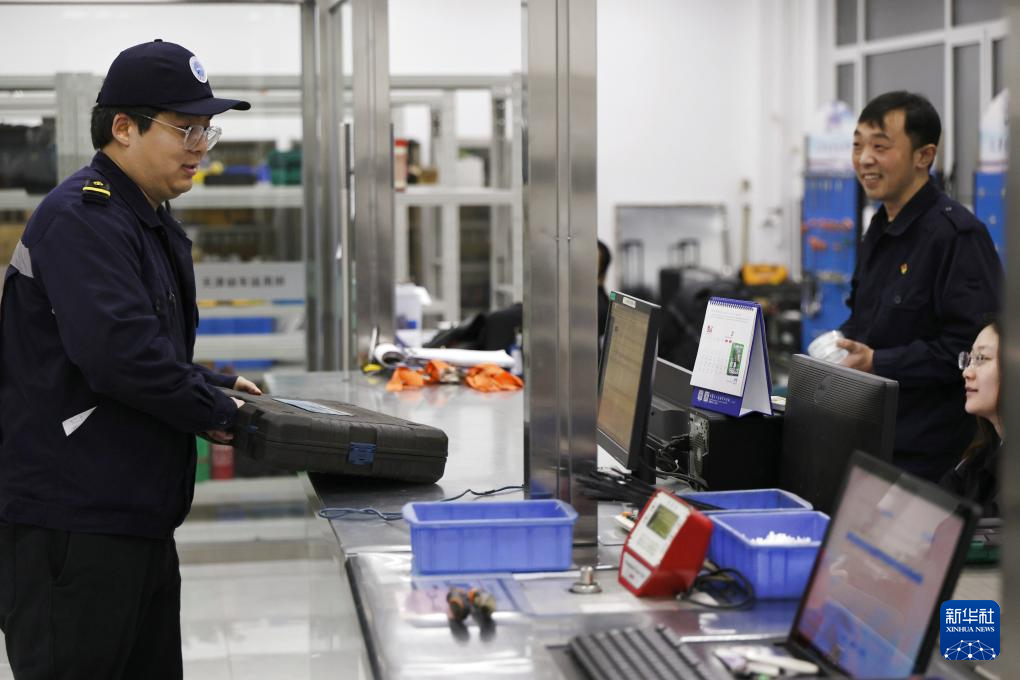 2月1日,在天津动车运用所,李奇伟(左)领取检修工具。