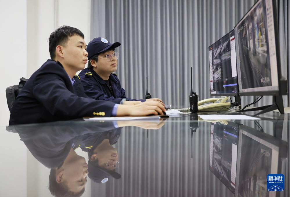 2月1日,在天津动车运用所,李奇伟(右)和同事一起查看监控屏幕。