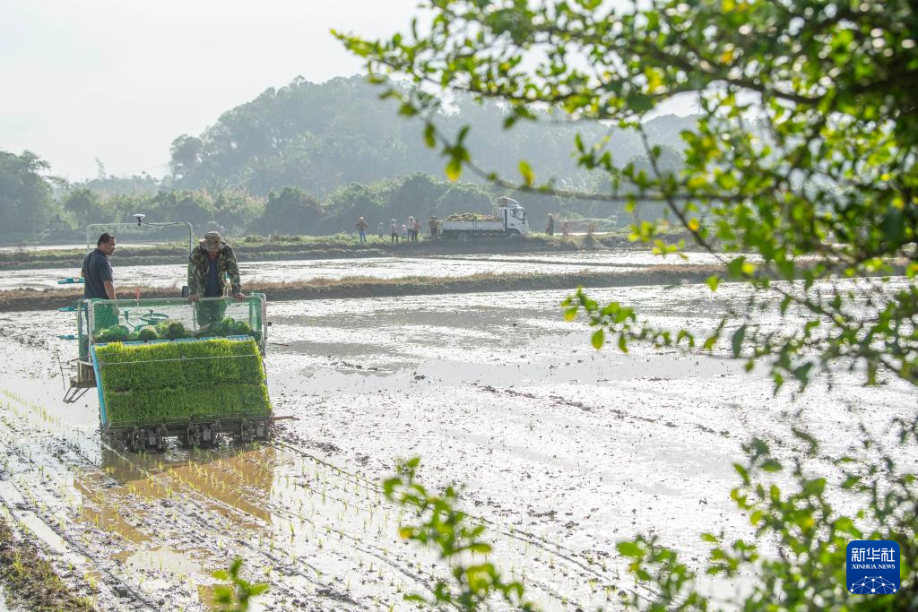 2月4日,海南省琼海市嘉积镇农民在田间插秧。