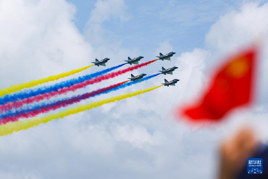 中国空军八一飞行表演队在第十届新加坡航展进行飞行表演