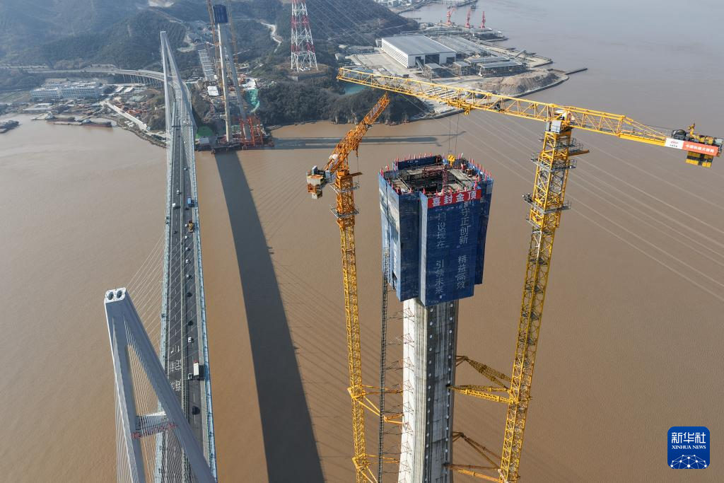 新春走基层丨甬舟铁路桃夭门公铁两用大桥6号主塔顺利封顶