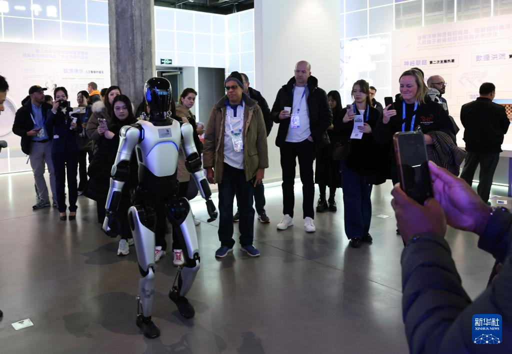 2月4日,嘉宾在世界技能博物馆人工智能临展区参观人形机器人。