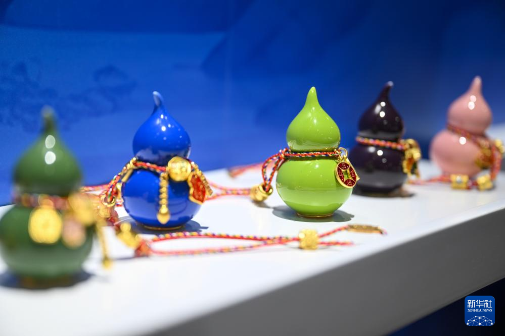 这是展出的由残疾人创作的工艺品《颜色釉葫芦》(2月4日摄)。