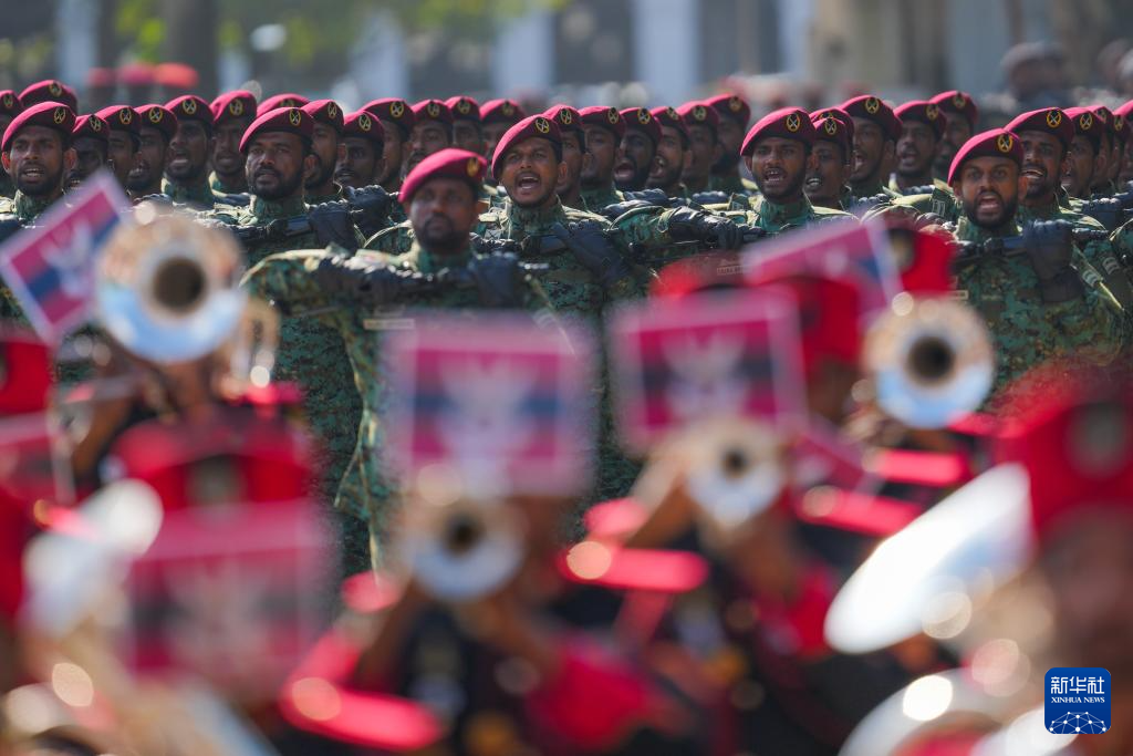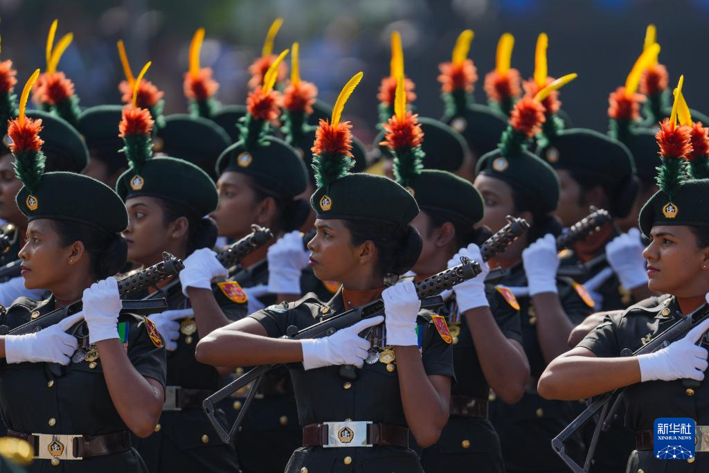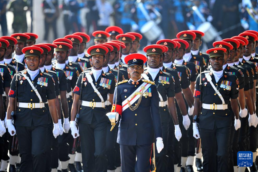 这是2月4日在斯里兰卡首都科伦坡拍摄的独立日阅兵式现场。
