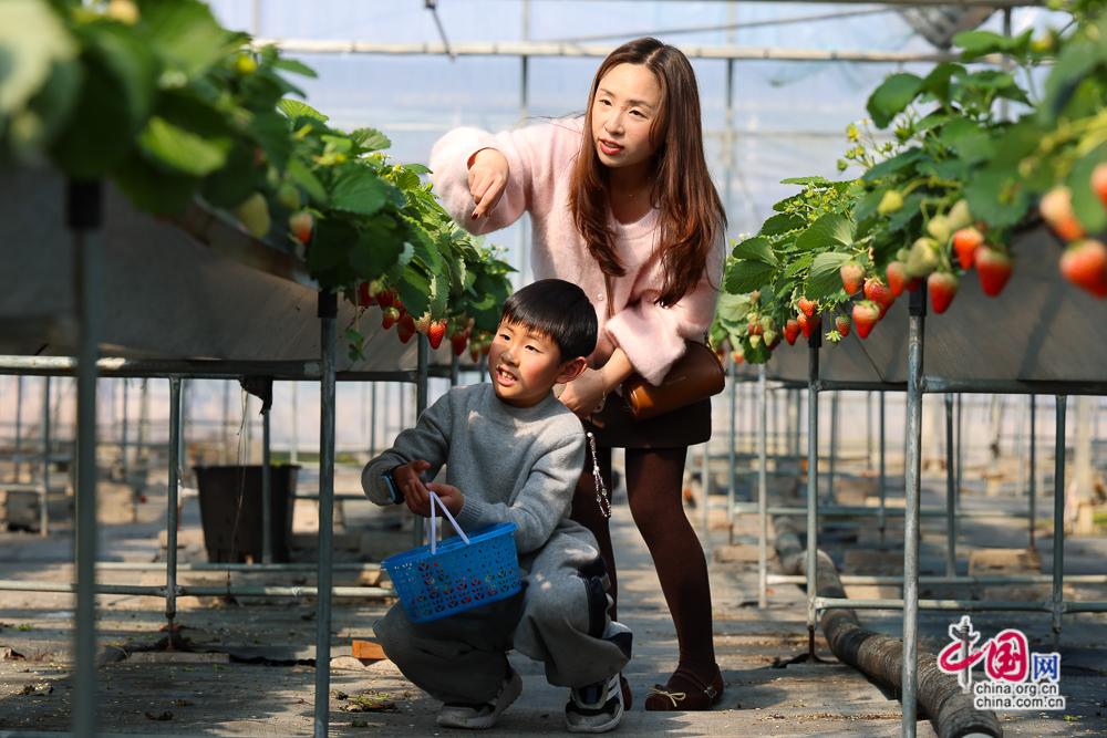 2月4日,游客走进藤头村农创中心,体验草莓采摘的乐趣。近年来,滕头村村党委创新“生态研学+”产业模式,串联景区景观、农事体验、低碳科普等场景,打造特色生态研学走廊;同时首创“村集体主导+专业运营”双轮驱动机制,统筹生态资源开发、精细化运营管理,形成“资源—管理—收益”共享闭环。