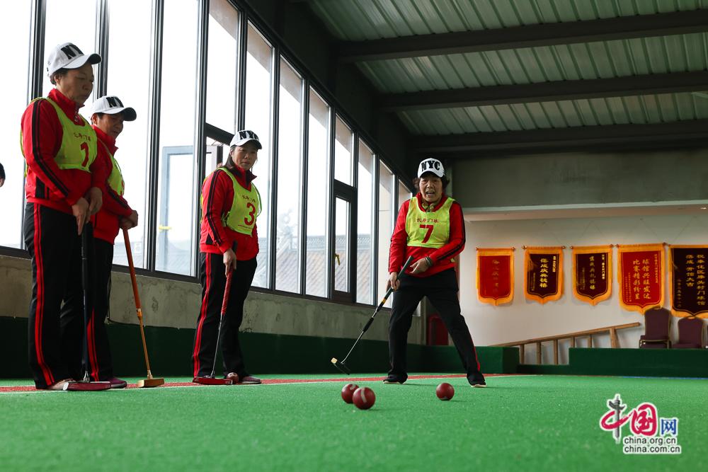 2月4日,立春当天,村里的门球队员们齐聚场馆,一场热闹的队内对抗赛正精彩上演。