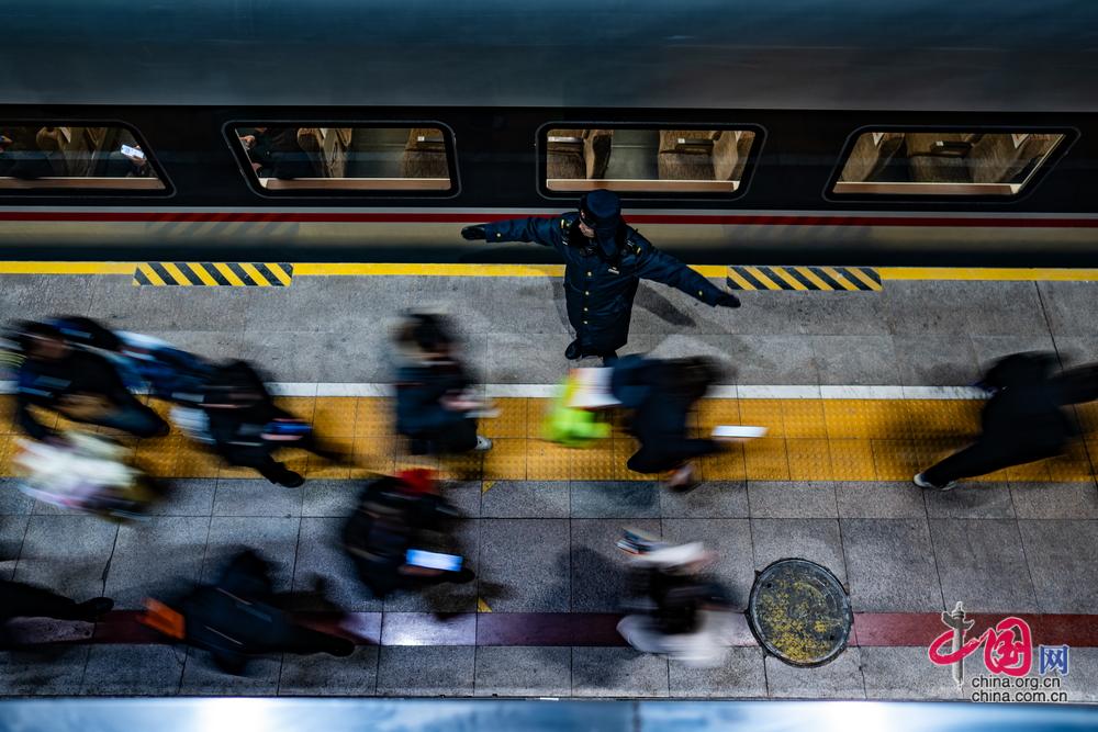2月2日5点,乘坐北京局2026年春运首趟高铁列车G6701次的乘客在工作人员引导下准备登车,踏上回乡之路。(资料图)中国网记者 郑亮摄
