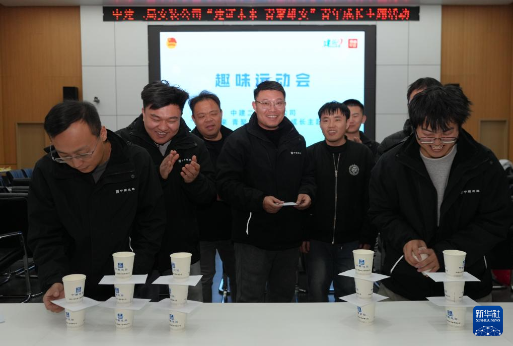 2月5日,在中建二局安装公司雄安国贸中心项目举行的“建证未来 青聚雄安”主题活动上,一线建设者参加名为“手抽纸片”的趣味节目。