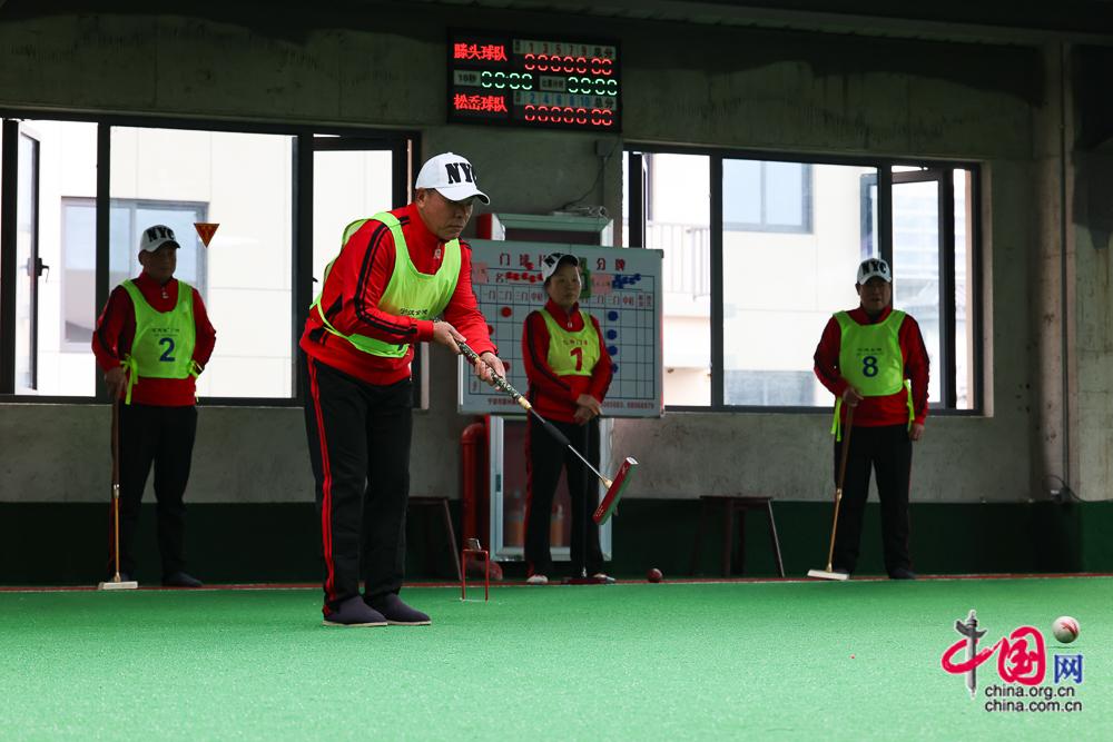 2月4日,滕头村老年人在村里的门球馆训练。2019年,滕头村率先成立全省首个村级农村老年基金会,由企业家和村民共同筹款成立,基金主要用于滕头村发放高龄补贴、医疗保障,以及文体生活和老年协会的各项开支。中国网记者 董宁 摄影