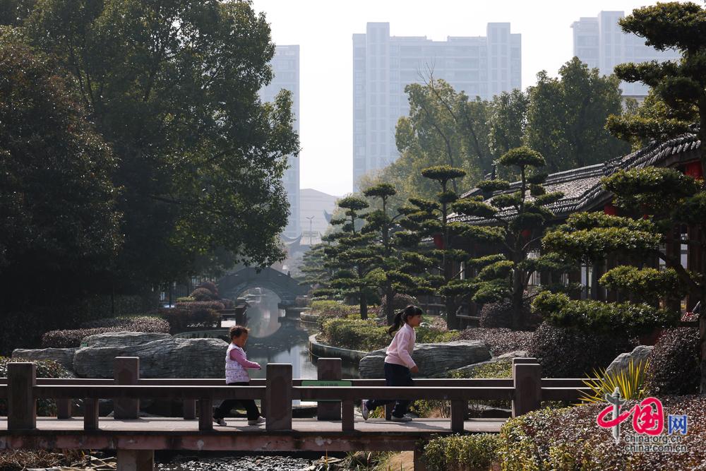 2月3日,两名小游客在风景如画的滕头村里嬉戏。打造滕头村这幅优美的绿色画卷,滕头村环保委员会功不可没,1993年,滕头村为了更好地践行生态保护、绿色发展,成立了全国首个村级环保委员会。30多年里,村环保委员会否决了55个效益看好但环保不达标的项目。中国网记者 董宁摄影