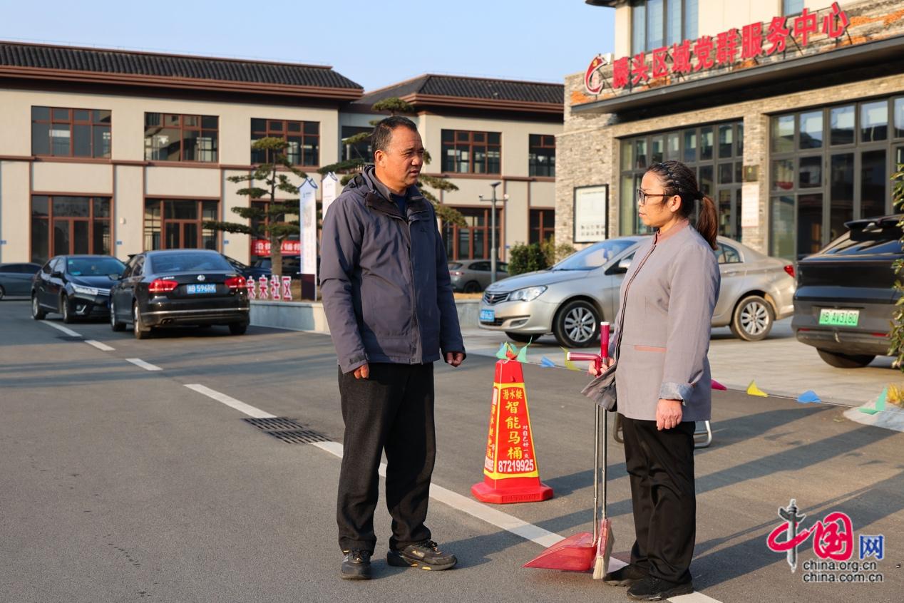 2月4日,春节日益临近,滕头村环保委员会副主任傅德明和外地保洁员工沟通春节返乡情况,确保节日期间村貌整洁。傅德明介绍:“从否决项目到绿色招商,从绿色招商到全面绿色,随着滕头村的不断发展壮大,低碳环保理念的认知深入,村环保委员会的工作也在不断转变、升级。” 中国网记者 董宁 摄影