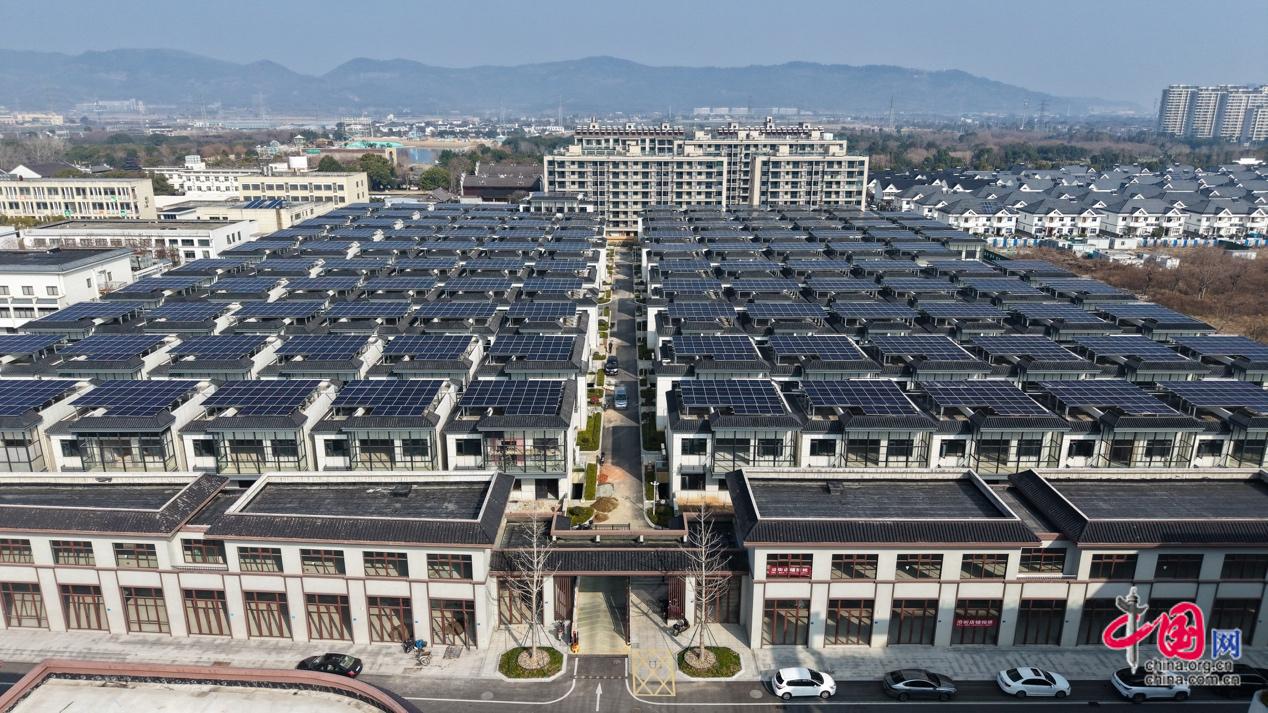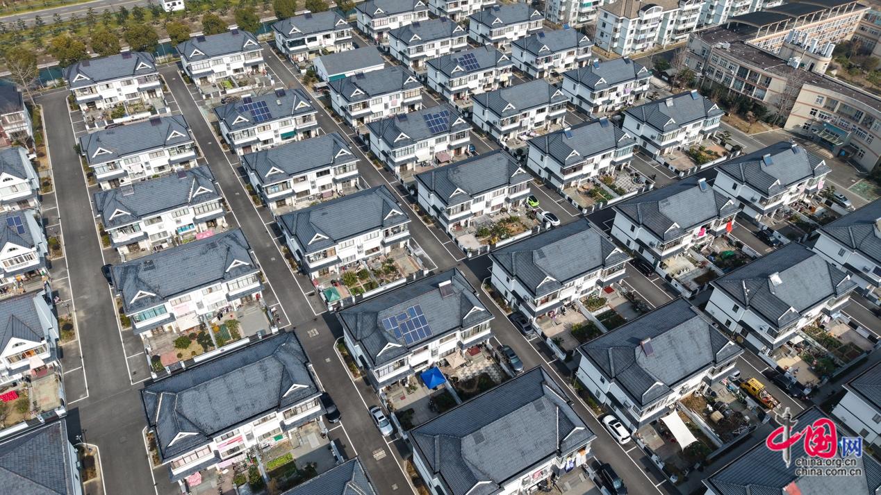 图为滕头村新建的未来社区,宽敞明亮的落地窗、整齐排列的屋顶光伏板,无不展示着这片联排别墅群的现代和气派。未来社区2025年初完成抽签分配,是浙江省第三批拆改结合类未来社区试点项目。中国网记者 董宁 摄影