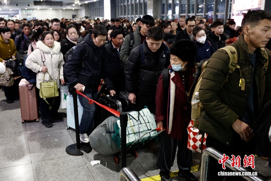 2月8日,来自中国交通运输部的数据显示,自2月2日起,2026年春运已满一周。春运首周,预计全社会跨区域人员流动量累计141322.7万人次,日均20189万人次,比去年同期增长2.0%。图为2月6日,旅客们在南京火车站出行。