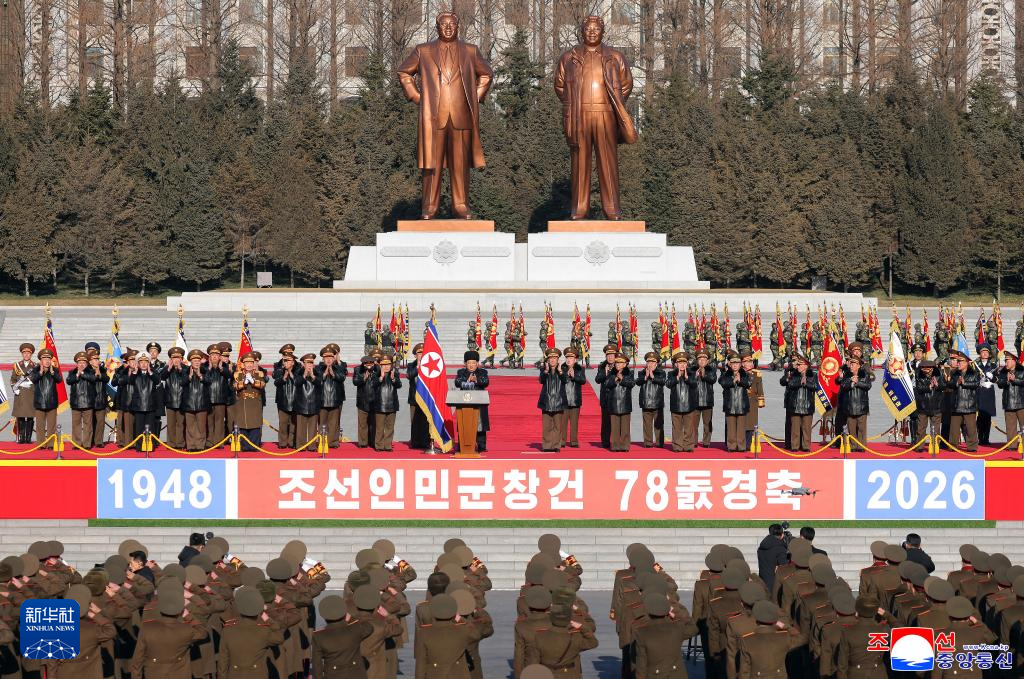 据朝中社2月9日报道,在朝鲜人民军建军78周年之际,朝鲜劳动党总书记、国务委员长金正恩8日视察国防省,祝贺并勉励全军官兵。