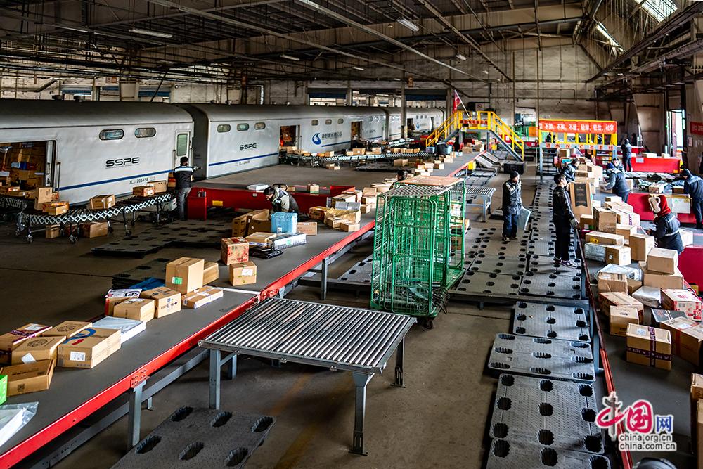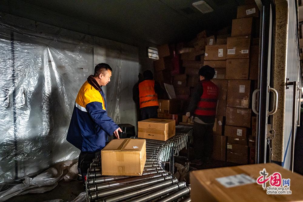 北京铁路物流中心黄村营业部春运高峰期日均装卸量会突破 20 万件。中国网记者 郑亮摄