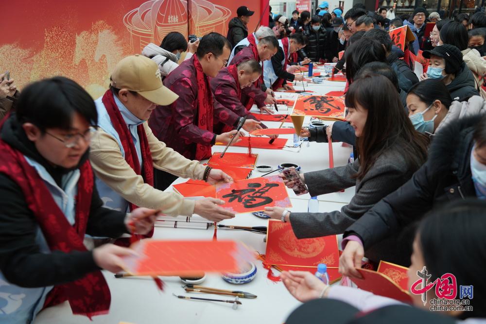 进入春运以来,北京南站客流逐日增加,在便捷、智能出行的同时,车站努力为旅客同步提供文化、温暖的出行体验。在车站工作人员、社会和高校志愿者的引导协助下,现场井然有序,一场别开生面的舞蹈和戏曲快闪与写福送祝福在此相遇,让春运归途的旅客,沉浸式体验了一场传统文化盛宴。