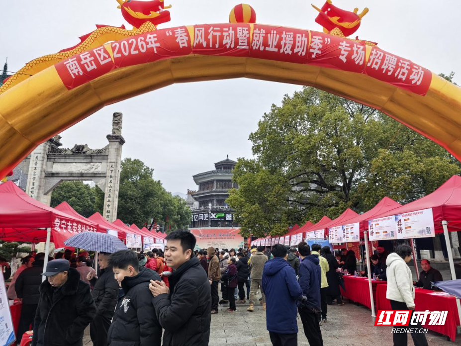 红网时刻新闻2月10日讯(通讯员 旷洁)2月9日上午,“春风送岗促就业 真情相助暖民心”——南岳区2026年春风行动专场招聘暨就业援助季活动在天下南岳牌楼广场圆满落幕。本次活动以“线下+线上”、“零工对接+劳务协作+政策护航”模式,深度融合文旅产业优势,实现产业发展与民生就业双向赋能。