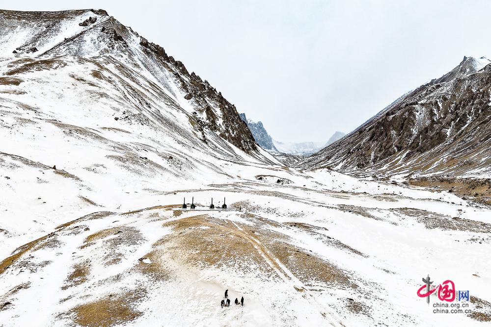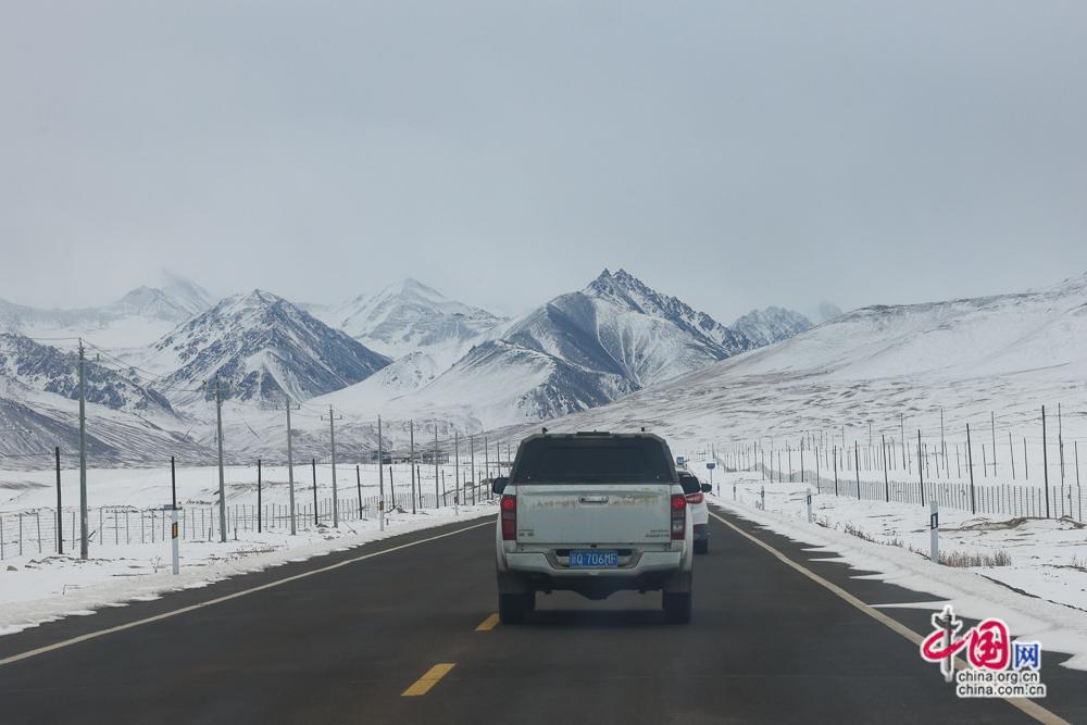 2月11日,塔县气象局职工驱车前往慕士塔格冰川公园应用气象观测站检修气象设备。中国网记者 董宁 摄影