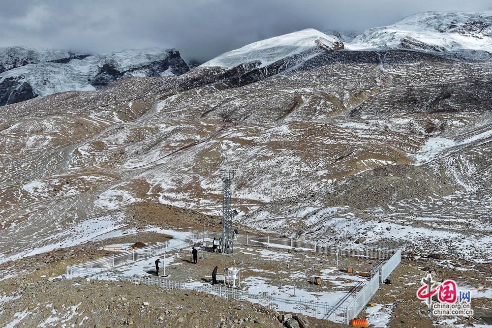 2月11日,塔县气象局职工在塔什库尔干慕士塔格冰川应用气象观测站检测维护设备。中国网记者 董宁 摄影