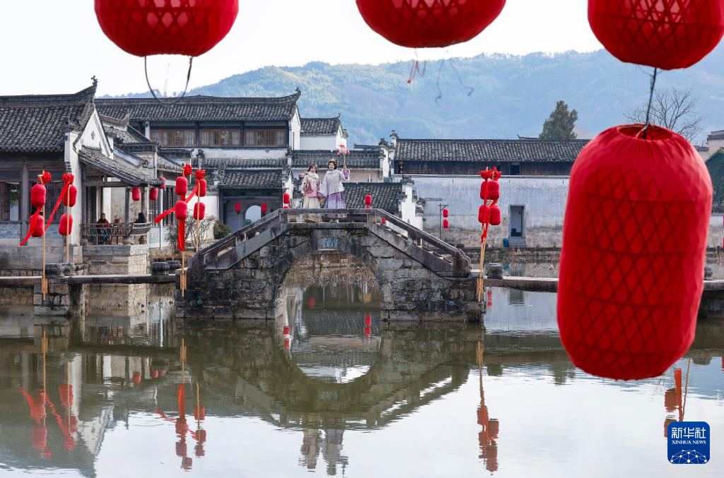 2月14日,游客在安徽省黄山市徽州区呈坎古村游玩。