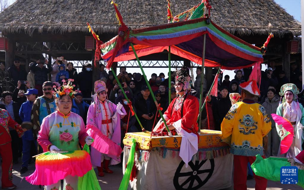 2月17日,演员在北京市通州区大运河森林公园表演。