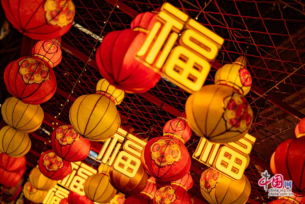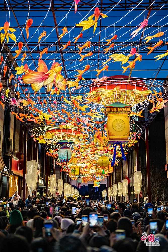 春节期间,前门大街灯饰迷人年味十足,吸引八方游客前来打卡留念。中国网记者 郑亮摄