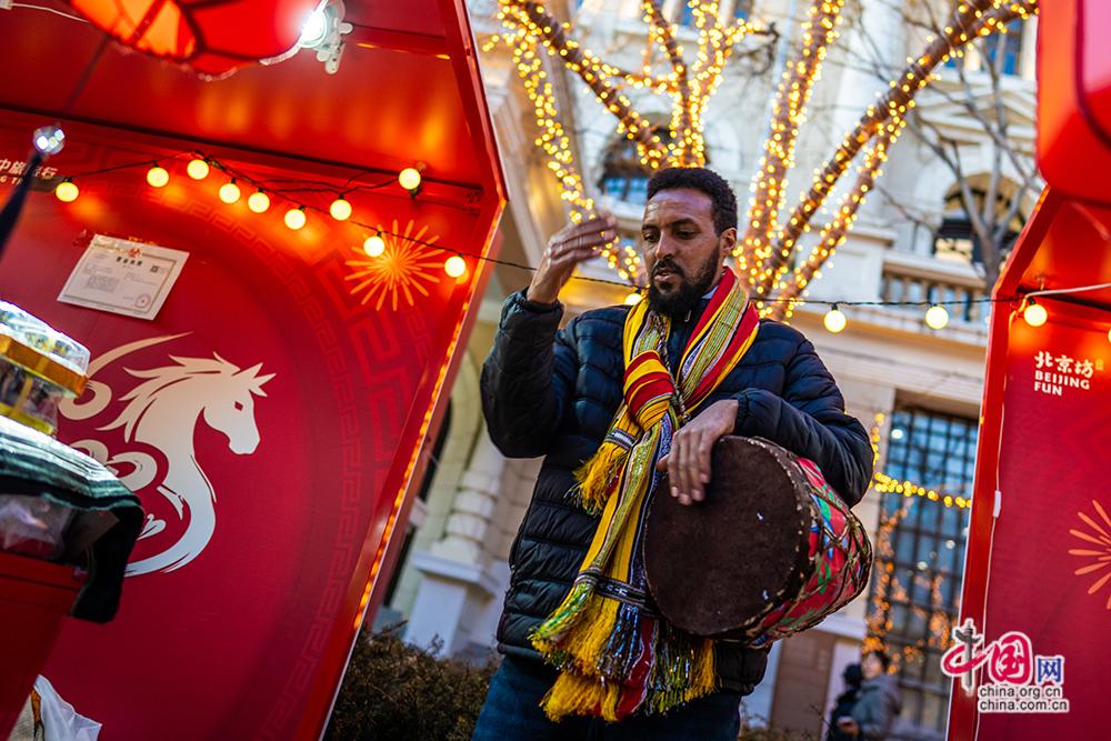 来自津巴布韦的商户进行当地传统文艺表演,本届坊会国际文化市集汇聚五大洲14国24个非遗摊位,让市民游客不出京城打卡环球年味,感受中外文化碰撞的独特魅力。中国网记者 郑亮摄