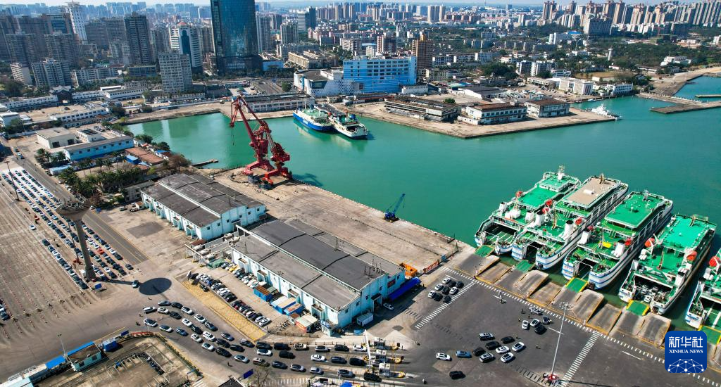 这是2月21日在海南省海口市秀英港拍摄的客滚船(无人机照片)。