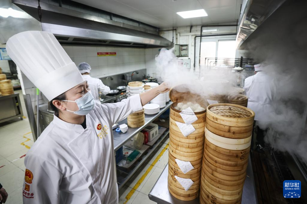 2月21日,有着197年历史的沈阳老边饺子馆的厨师在包饺子。
