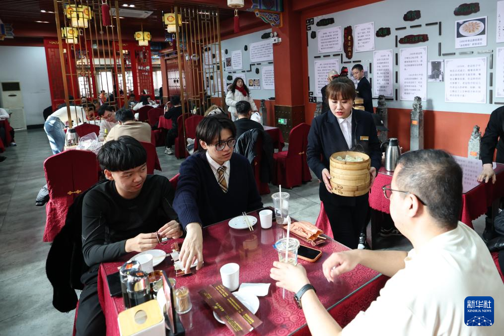 2月21日,食客在有着197年历史的沈阳老边饺子馆品尝饺子。