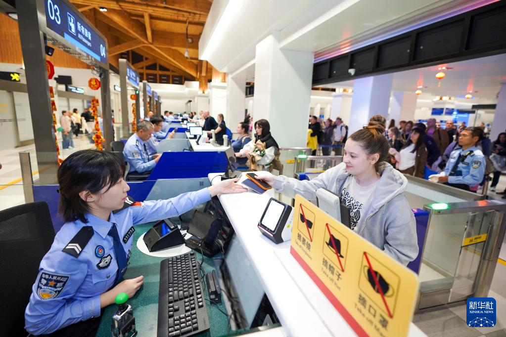 2月23日,凤凰边检站执勤民警为旅客办理边检手续。