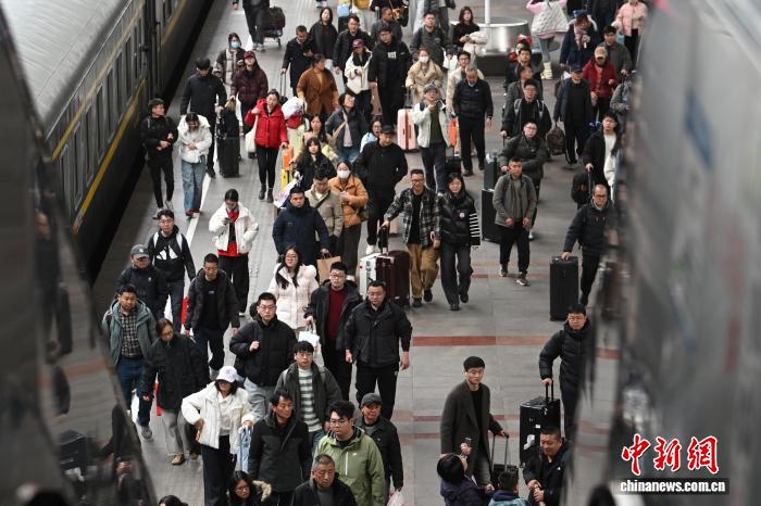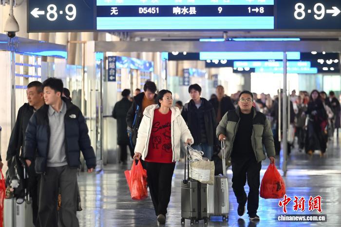 2月23日,江苏南京,旅客们在火车站出行。中新社记者 泱波 摄